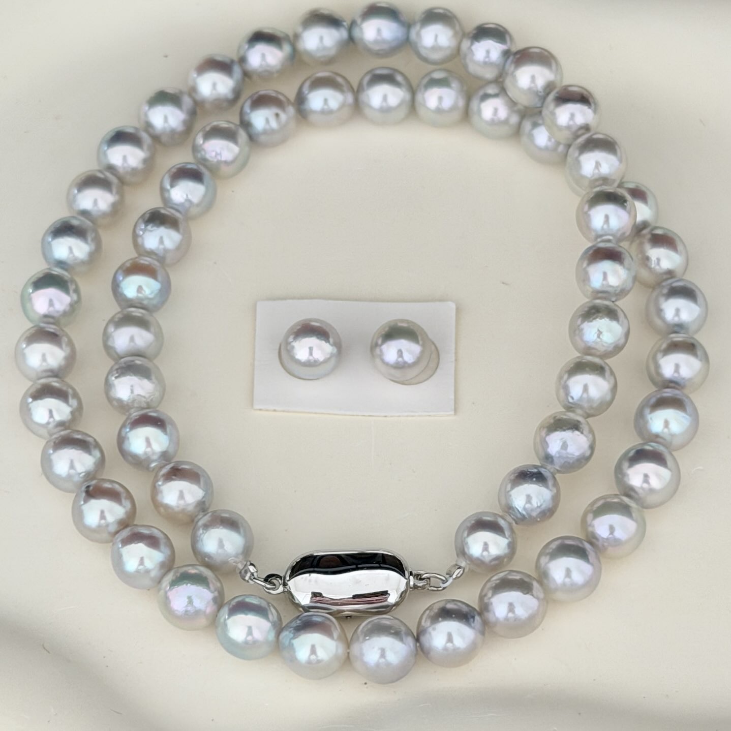 あこやナチュラル系真珠ネックレスFA鑑別付き7.5-8.0mmセット極みのブルー 更新日:2026年3月14日 公開日:2026年3月3日 アコヤ真珠ネックレス 真珠科学研究所の鑑別書付き 無調色ナチュラルブルーの証明が付された鑑別書付きです。(備考欄に記載) その他の画像 保管ケース ネックレスの保管には丈夫なケースをお付けしています。またお手入れ用に真珠てりクロス、持ち運びに […] 続きを読む